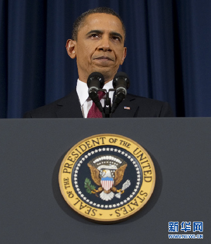 資料圖片:3月28日,美國總統(tǒng)奧巴馬在華盛頓發(fā)表演說,為利比亞軍事行動(dòng)辯解。 新華社/法新