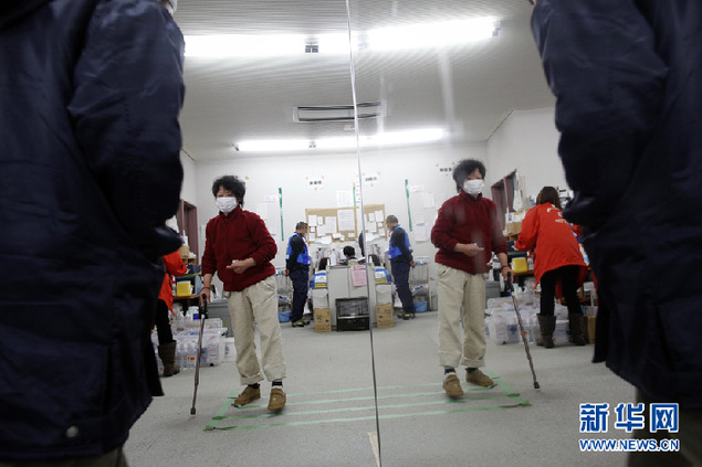 3月30日,在日本地震重災(zāi)區(qū)宮城縣南三陸町,一名在海嘯中受傷的女子到一個臨時診所治傷。 新華社/路透