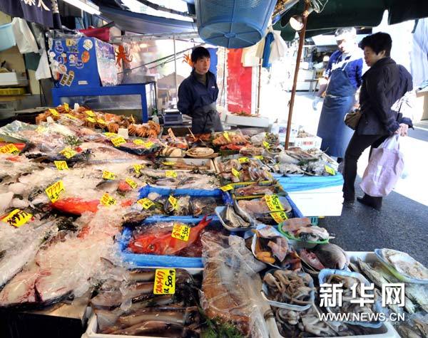 4月5日,賣家在日本首都東京一家海鮮攤上招攬顧客。日本茨城縣漁業(yè)協(xié)會(huì)5日宣布,從4日在北茨城市附近海域捕撈的玉筋魚(yú)幼魚(yú)體內(nèi)檢測(cè)出放射性銫達(dá)到每千克526貝克勒爾,超過(guò)食品衛(wèi)生法放射物暫定標(biāo)準(zhǔn)值設(shè)定的每千克500貝克勒爾。這是首次從魚(yú)類體內(nèi)檢測(cè)出放射性物質(zhì)超標(biāo)。新華社/法新