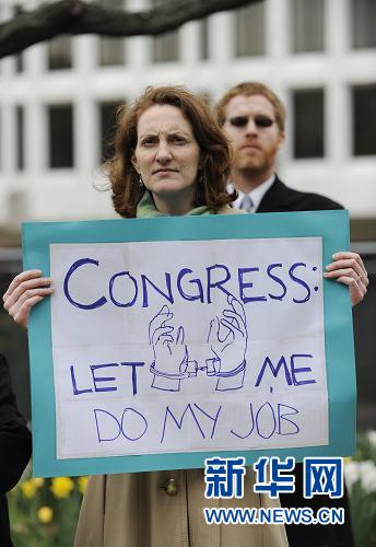 4月8日,在美國首都華盛頓國務(wù)院外,美國外交官舉著標(biāo)語牌,抗議聯(lián)邦政府被迫關(guān)門。目前,美兩黨尚未就政府預(yù)算案達(dá)成協(xié)議,聯(lián)邦政府在8日臨時(shí)預(yù)算到期后關(guān)門風(fēng)險(xiǎn)增大。如果政府關(guān)門,大約80萬公務(wù)員將“放大假”,受影響的包括白宮、各部委、國會(huì)和聯(lián)邦法院,美軍軍餉也將停發(fā)。與此同時(shí),所有國家公園、史密森學(xué)會(huì)博物館等都將關(guān)門,大多數(shù)政府部門網(wǎng)站將停止更新。新華社記者張軍攝