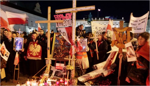 波蘭華沙民眾手舉十字架紀(jì)念空難