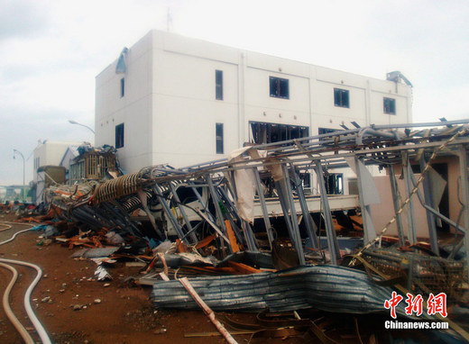 日本原子能安全保安院2011年3月23日發布的照片顯示了福島第一核電站內部建筑物受損情況。