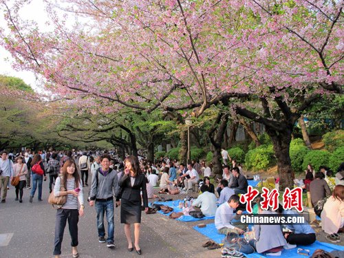 但是,地震已經無法阻擋明媚春光對人們的“誘惑”。在東京賞櫻勝地上野公園,成群結隊、呼朋喚友的日本人重新聚集到櫻花樹下把酒言歡。最美瞬間的“櫻花七日”已近尾聲,淡粉色的花瓣和往年一樣,隨風舞在游人的頭頂。從上野動物園走出的孩子們,興高采烈地抱著熊貓玩偶,唱RAP的街頭藝人也依舊投入忘我地吟誦著自己對未來的企盼。游人只有在不經意間瞥到“支援東北”的標語時才感受到了這里與往昔的些微不同。