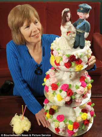 據英國《每日郵報》報道,英國南安普頓74歲老婦人花費400多個小時,為威廉王子及其準王妃“編織”了一個高三層的毛線結婚蛋糕,以表祝賀。