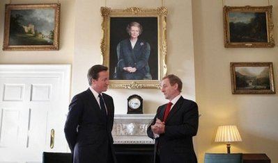 英國首相卡梅倫(左)18日在唐寧街首相府會見了來訪的愛爾蘭總理肯尼。