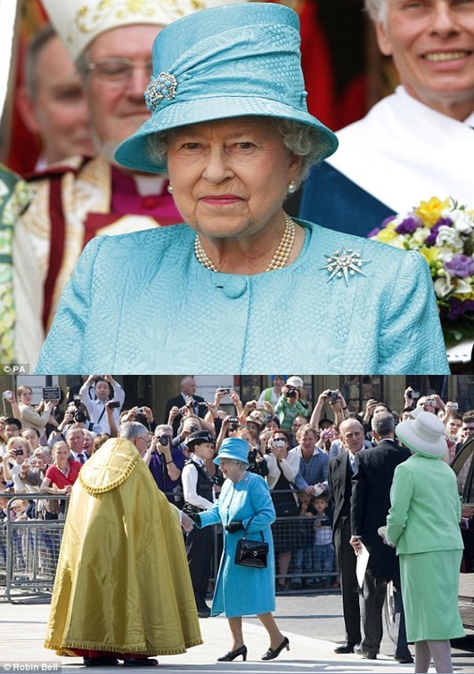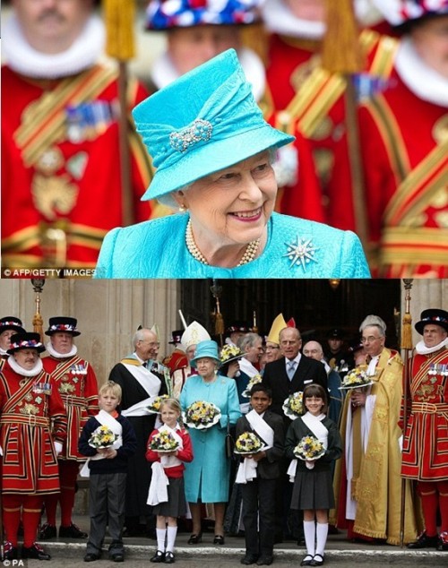 據報道,身穿天藍色套裝的英國女王伊麗莎白二世在愛丁堡公爵、丈夫菲利普親王的陪同下,出現在一周后威廉王子即將舉行婚禮的倫敦西敏寺大教堂,身后跟隨著儀仗隊和高級神職人員代表團。