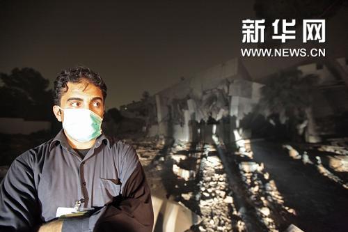 4月25日,在利比亞首都的黎波里,一名男子站在被轟炸的利比亞領導人卡扎菲的官邸前。北約戰機25日凌晨對利比亞領導人卡扎菲在的黎波里的官邸實施轟炸。利比亞政府官員譴責北約企圖殺害卡扎菲,并稱轟炸造成45人受傷、卡扎菲辦公室受損嚴重。新華社/路透