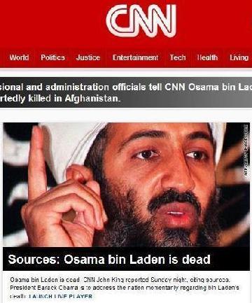 圖為CNN網(wǎng)站報道截圖:消息人士稱 奧薩馬·本·拉丹已經(jīng)死