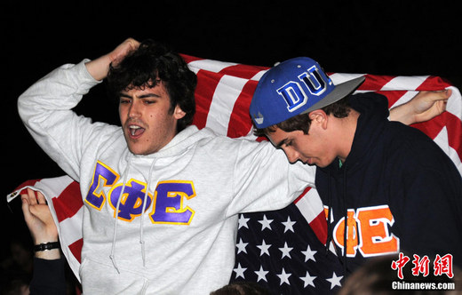 美國總統(tǒng)奧巴馬1日晚突然召開記者會,正式宣布基地組織頭目本·拉登已經死亡。在奧巴馬發(fā)表演講前后,許多美國民眾已高舉國旗聚集到白宮附近,他們高呼口號,慶祝拉登之死。 中新社記者 德永健 攝
