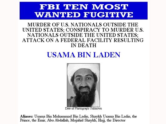 本·拉登曾被美國聯邦調查局列入十大主要通緝犯的名單