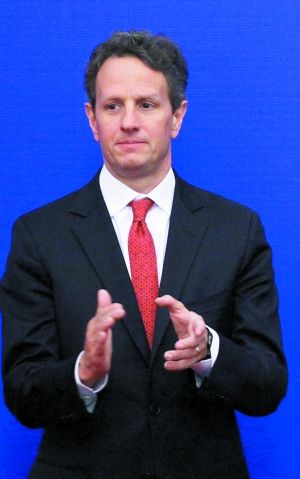 美國總統奧巴馬特別代表國務卿希拉里·克林頓(右二)和財政部長蒂莫西·蓋特納(右一)
