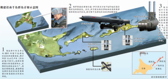 俄羅斯武裝力量總參謀長尼古拉·馬卡羅夫11日表示:“國防部的計劃已經(jīng)得到批準(zhǔn)!贝送,馬卡羅夫稱,俄羅斯將在南千島群島上建設(shè)兩個軍事?lián)c。