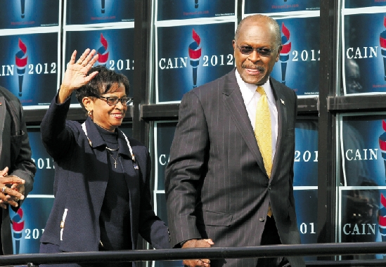 3日,美國共和黨總統競選人凱恩與妻子到達位于佐治亞州亞特蘭大市的競選總部。 新華社發