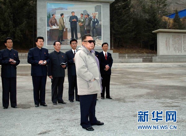 資料圖片:朝鮮中央通訊社2011年4月22日提供的照片顯示,朝鮮最高領(lǐng)導(dǎo)人金正日視察了惠山青年礦山。新華社/朝中社