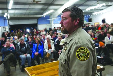 6日,治安官戴維·沃德與支持示威者的哈尼縣民眾進行交談。/CFP