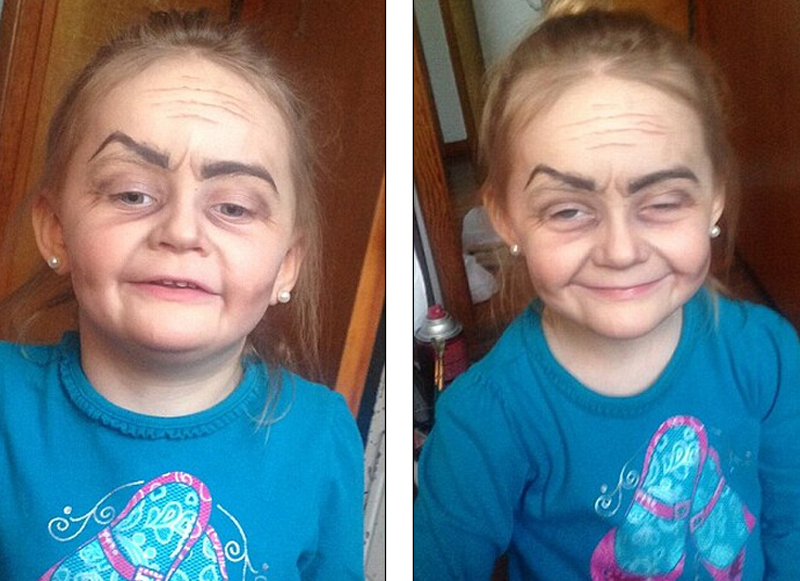 據(jù)英國《每日郵報》1月7日報道,美國俄亥俄州3歲小姑娘羅伊(Roey)近日被阿姨化了一個“老人妝”,瞬間變成了一位80歲的老奶奶,照片被放到網(wǎng)上后點贊人數(shù)超過4萬次。