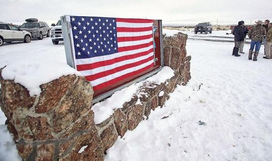 資料圖:民兵組織占領馬盧爾國家野生生物保護區總部,并在入口處蓋上美國國旗。(路透社)
