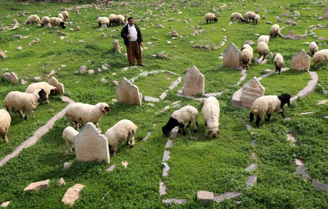 圖為摩蘇爾大壩附近,當(dāng)?shù)厝嗽诘赘窭锼购影斗叛颉P氯A/法新。