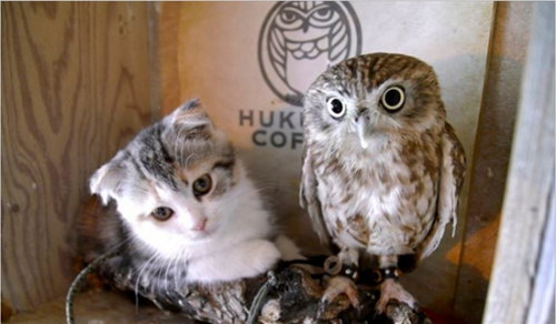 據報道,在當地一家以貓頭鷹為主題的咖啡館內,分別有一只招牌貓咪和貓頭鷹,兩個小家伙為店里帶來很多人氣,一直頗受歡迎。