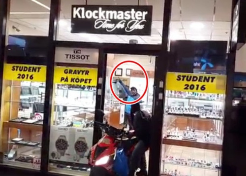 中新網5月18日電 據外媒報道,瑞典斯德哥爾摩兩名笨賊,上周打劫一間珠寶鐘表行時頻頻出洋相,不但一直開不了槍,逃走時又多次開不動摩托車,最后被捕。全程被路人近距離拍下,上傳至視頻分享網站,至今獲得70萬人點擊。