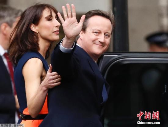 資料圖:當地時間2016年7月13日,英國倫敦,英國首相卡梅倫與家人一同告別唐寧街十號。