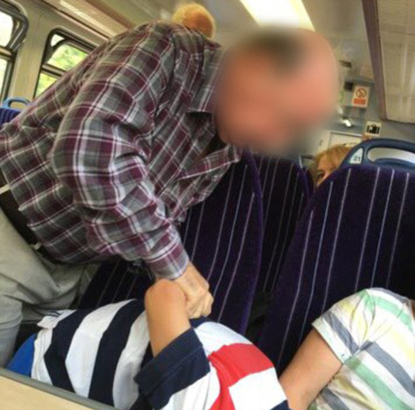 據(jù)英國《每日郵報(bào)》7月24日?qǐng)?bào)道, 7月22日,在英國一輛由克利斯羅開往維多利亞的火車上,一個(gè)老人把小男孩反扭手臂擒拿。原因是小孩在乘列車時(shí),沒有聽其勸阻而是堅(jiān)持把腳也放在座位上。
