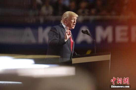資料圖:當地時間7月21日,在美國俄亥俄州克利夫蘭舉行的共和黨全國代表大會上,共和黨總統候選人特朗普發表演講。中新社記者 廖攀 攝