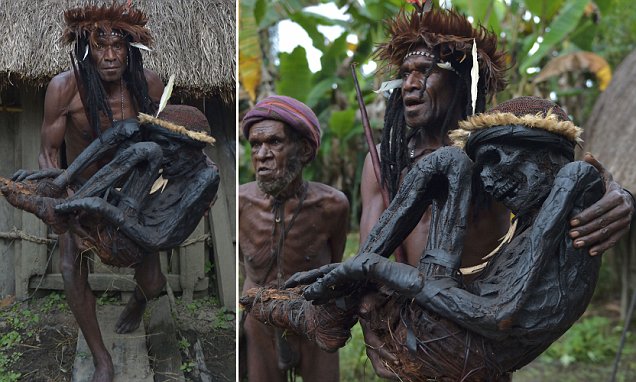【環球網綜合報道】據英國《每日郵報》8月14日報道,在印度尼西亞一座遙遠的村莊,一個名叫丹尼部落的原始部落仍保持著原始生活狀態,他們用煙把祖先的尸體做成木乃伊,使其保持幾百年而不腐爛,以此作為紀念祖先的一種方式。