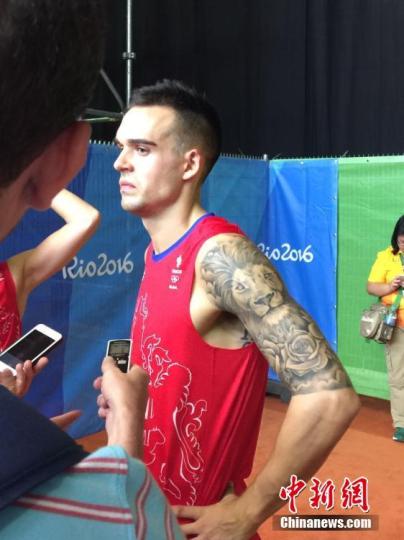 資料圖:2016里約奧運羽毛球混雙小組賽首輪比賽,圖為愛德考克的獅子文身吸引媒體鏡頭。中新網(wǎng)記者 盧巖 攝