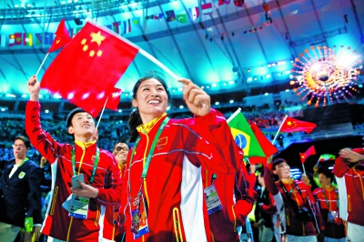 中國代表團運動員在里約奧運會閉幕式上。
