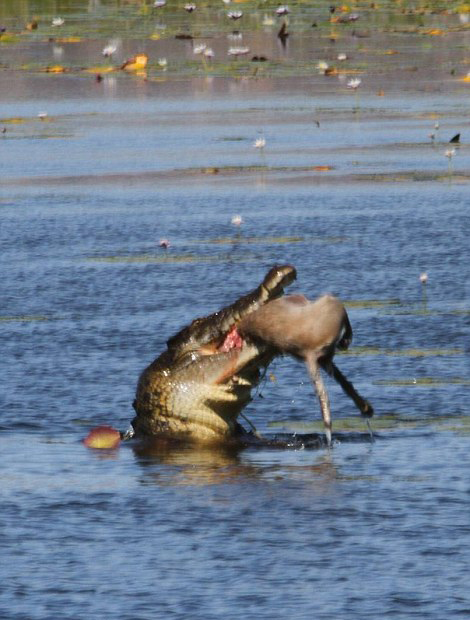 近日,攝影師唐娜德 萊克斯勒在其位于澳大利亞北部的住宅附近拍攝下了驚險一幕,4.5米長的巨鱷在30秒內吞食了一只沙袋鼠。