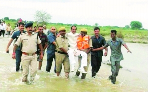 新華社電 印度中央邦連日來飽受洪水侵襲,邦首席部長希夫拉杰·辛格·喬漢上周末前去災區(qū)視察,卻招致罵聲一片。原因很簡單:盡管洪水只深及腳踝,喬漢卻不愿自己走路,偏要讓兩名警察抬著走。