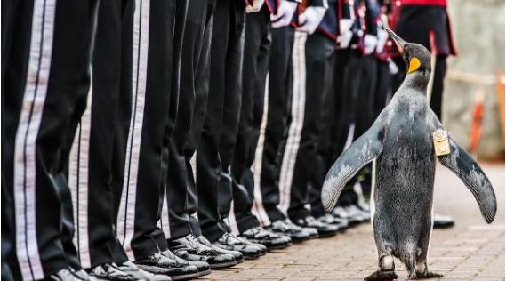 這只帝企鵝已經是國王衛隊的名譽團長、部隊的吉祥物,它還在2008年被授予爵士頭銜。
