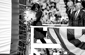 米歇爾·奧巴馬摔酒瓶慶祝美軍艦交付的資料照片。