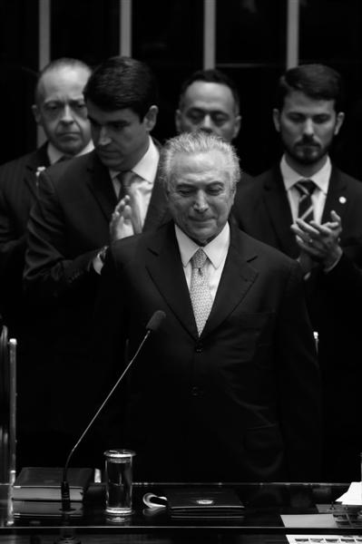 彈劾案通過后,特梅爾來到參議院,并在議員和內閣部長的見證下,正式就任巴西總統。