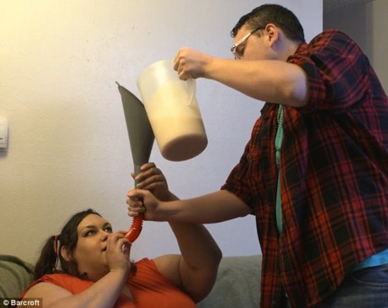 美女子欲增肥到900斤 靠男友漏斗喂飯