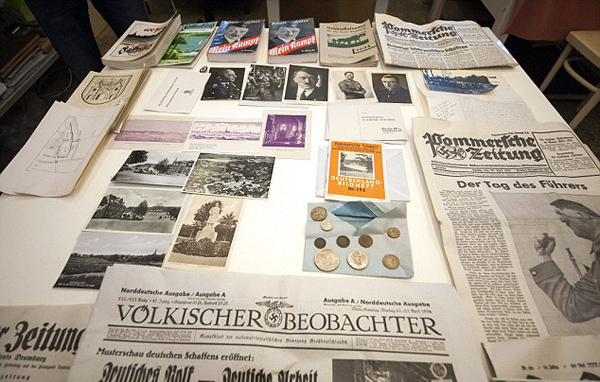【環球網綜合報道】據英國《每日郵報》9月17日報道,近日,考古學家在波蘭納粹培訓學校的水泥建筑內發現一根銅柱,里面藏有納粹黨在1934年留下的一些珍貴資料,其中包括少量的古馬克幣、一枚納粹徽章、兩卷《我的奮斗》和一些舊報紙。