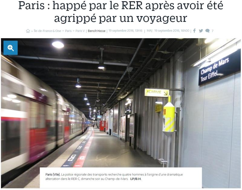 【環(huán)球網報道 記者 徐亦超】臺灣聯合新聞網20日援引歐洲觀點“臉書”(Facebook)報道稱,在法國巴黎的一位臺灣旅客在當地時間周日(18日)晚上11時左右搭乘郊區(qū)鐵路RER C線的途中遭受攻擊,地點位于戰(zhàn)神廣場站(Champ de Mars station VII e )。據了解,這位臺灣旅客的傷勢非常嚴重,目前已經送到 Pitie-Salpetriere 醫(yī)院。
