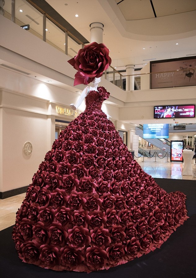 這款長(zhǎng)裙名為“紅玫瑰”,高3.5米,長(zhǎng)4米,由400余朵紙質(zhì)玫瑰精心制成,色彩明艷,奪人眼球。據(jù)了解,長(zhǎng)裙上的每朵玫瑰均為純手工制作,花費(fèi)100多個(gè)小時(shí)制成。而后,這些玫瑰從倫敦被運(yùn)往悉尼,由布蘭德利耗時(shí)一周打造而成。布蘭德利以設(shè)計(jì)此類紙質(zhì)禮服聞名,其設(shè)計(jì)作品曾在哈羅茲、蒂凡尼、路易威登等名店展出,也曾在《時(shí)尚芭莎》等知名時(shí)尚雜志上出現(xiàn)。