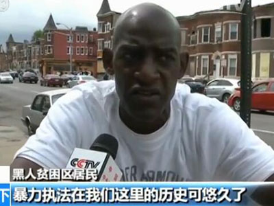 去年4月,25歲的非洲裔青年格雷在美國馬里蘭州巴爾的摩市遭警察逮捕后“非正常死亡”。當時,在美國的央視記者就曾到巴爾的摩一個典型的黑人社區去一探究竟——也許記者的探訪,能說明一些問題。