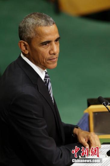 美國總統(tǒng)奧巴馬發(fā)言。 中新社記者 廖攀 攝