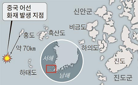 《中央日報》稱,木浦海警曾于9是20分許3次下達(dá)船停命令,但漁船不予回應(yīng)并試圖逃走。韓方搜索隊(duì)員登船后,中國船員將駕駛艙反鎖進(jìn)行抵抗。韓國海警向駕駛艙投擲了3枚爆音彈,其中2枚爆炸。不久后,駕駛艙附近起火。