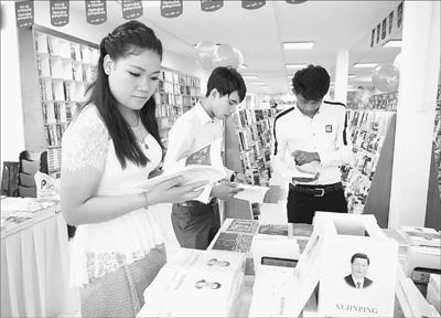 10月10日上午,中國主題精品圖書聯展開幕式在柬埔寨首都金邊和平書局舉行。此次圖書聯展以中、柬、英、法等語種,集中展示《習近平談治國理政》等1000余種中國主題精品圖書,內容涵蓋中國政治、經濟、文化、歷史等各個方面,將眾多優秀中國主題書籍與求知若渴的柬埔寨讀者連接在一起。