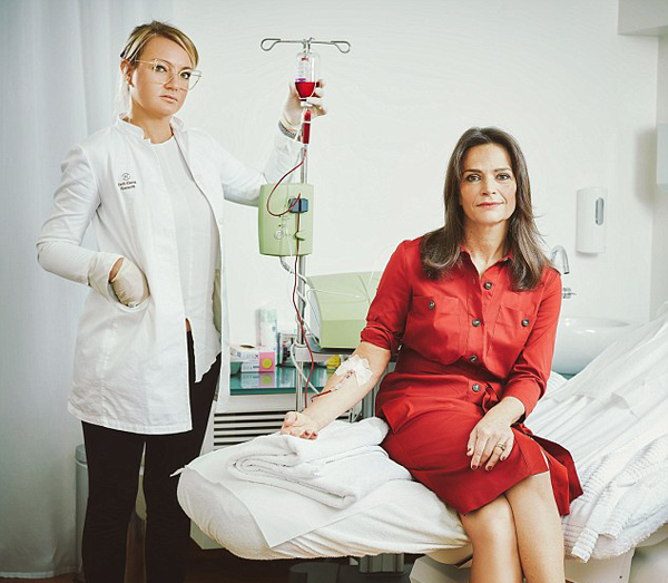 簡·弗萊爾(Jane Fryer)是其中一個接受臭氧療法的患者,據(jù)稱,她本人嚴重暈血,接受治療時十分忐忑,但想到這一切都是為了內(nèi)在的美麗,為了讓血液循環(huán)重獲年輕,便覺得在所不惜。