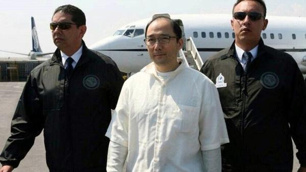 中新社休斯敦10月19日電 墨西哥籍華裔商人葉真理18日被從美國引渡回墨西哥,他將面臨參與制毒販毒等罪名的指控。墨西哥警方2007年曾經(jīng)從其家中搜出2.05億美元現(xiàn)金,創(chuàng)造史上單次繳獲贓款最大金額。圖為葉真理被羈押回墨西哥。