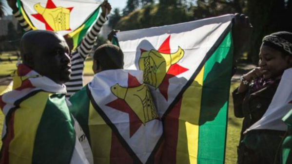 津巴布韋的反政府示威者在示威時使用國旗(資料圖)