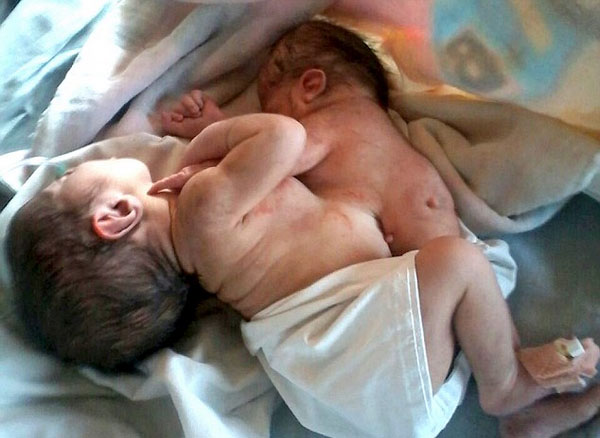 赫姆拉塔來自印度拉賈斯坦邦,此前并沒有做過超聲波檢查。原本打算在家分娩的她意外難產,被匆忙送往當地的烏梅德婦產醫院后才順利誕下雙胞胎兒子。但赫姆拉塔沒想到,自己竟然生下了一對“寄生雙胞胎”。據悉,出現這種情況的概率僅為100萬分之一。