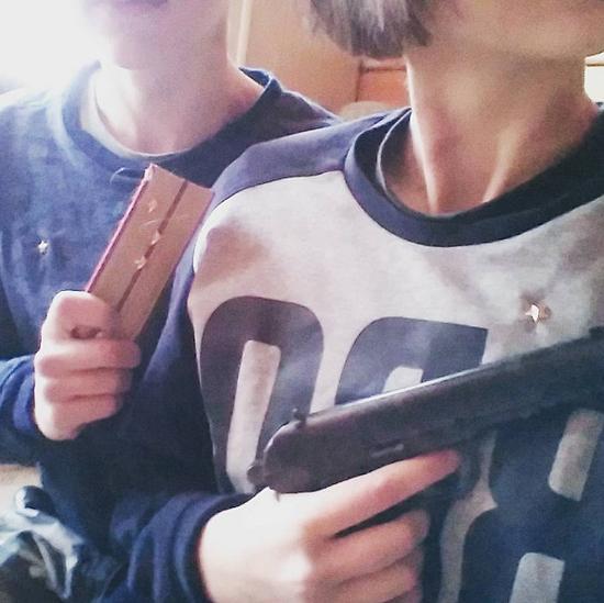 卡佳說他們最后剩下的武器就只有一個鋼片了,“這個好像沒什么用,不過挺有趣的”。警察曾給他們30分鐘的考慮時間,這對情侶在視頻中稱他們并不想自殺,他們將武器扔出窗外也是為了更好地思考。