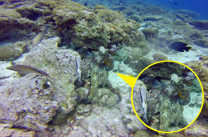 來自土耳其伊斯坦布爾的潛水員恩達 凱西姆(Enda Kesim)在馬爾代夫的阿里環礁用相機捕捉到了偽裝章魚。