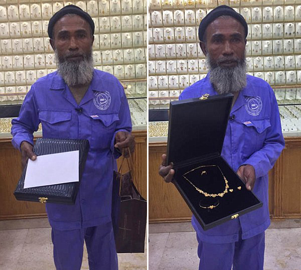 【環(huán)球網綜合報道】據(jù)英國《每日郵報》12月5日報道,沙特阿拉伯65歲的清潔工乃孜爾·阿爾-伊斯蘭·阿卜杜勒·卡里姆(Nazer al-Islam Abdul Karim)在珠寶店的櫥窗前駐足的一幕被人拍下來后發(fā)到網上并配文嘲笑。該照片在網上瘋傳后,善良的人們紛紛向他送去禮物。